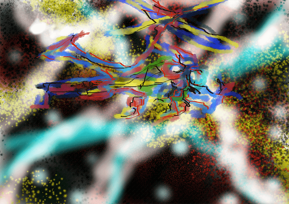 展示用絵画:かけつける正義のドローン [作者:情報資格試験]