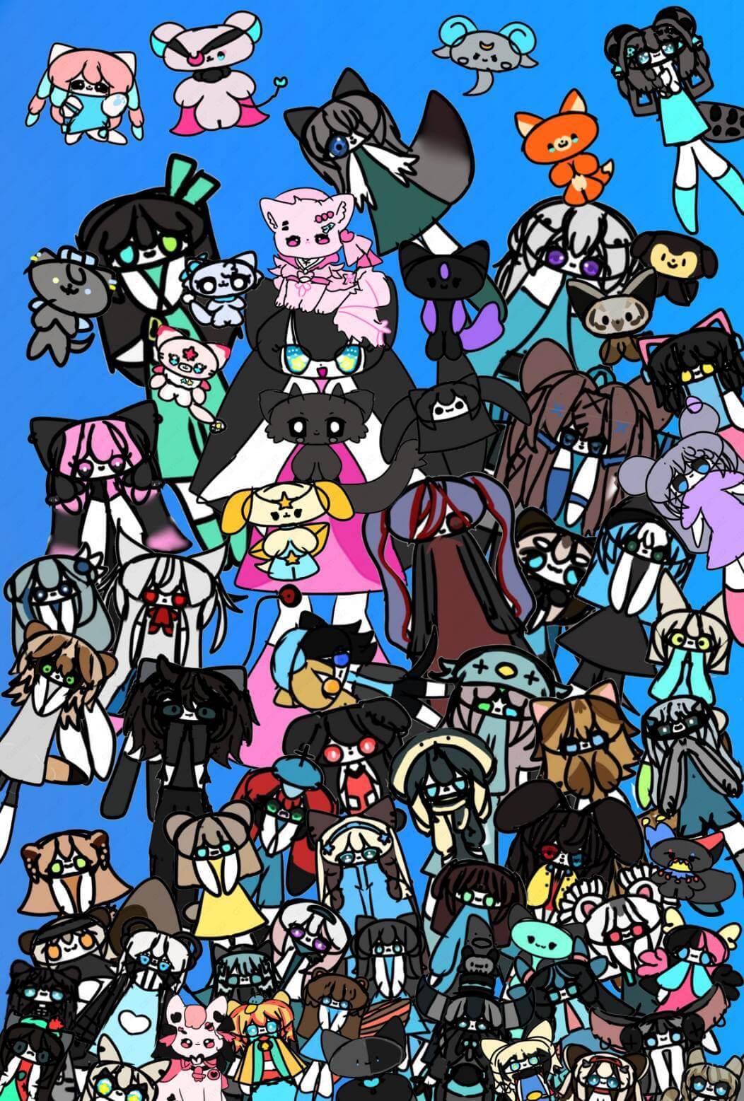1日ずつ一体ずつ増えていったキャラクターです。描いては、こちらの絵に載せていき、どんどん増やしていった作品です。