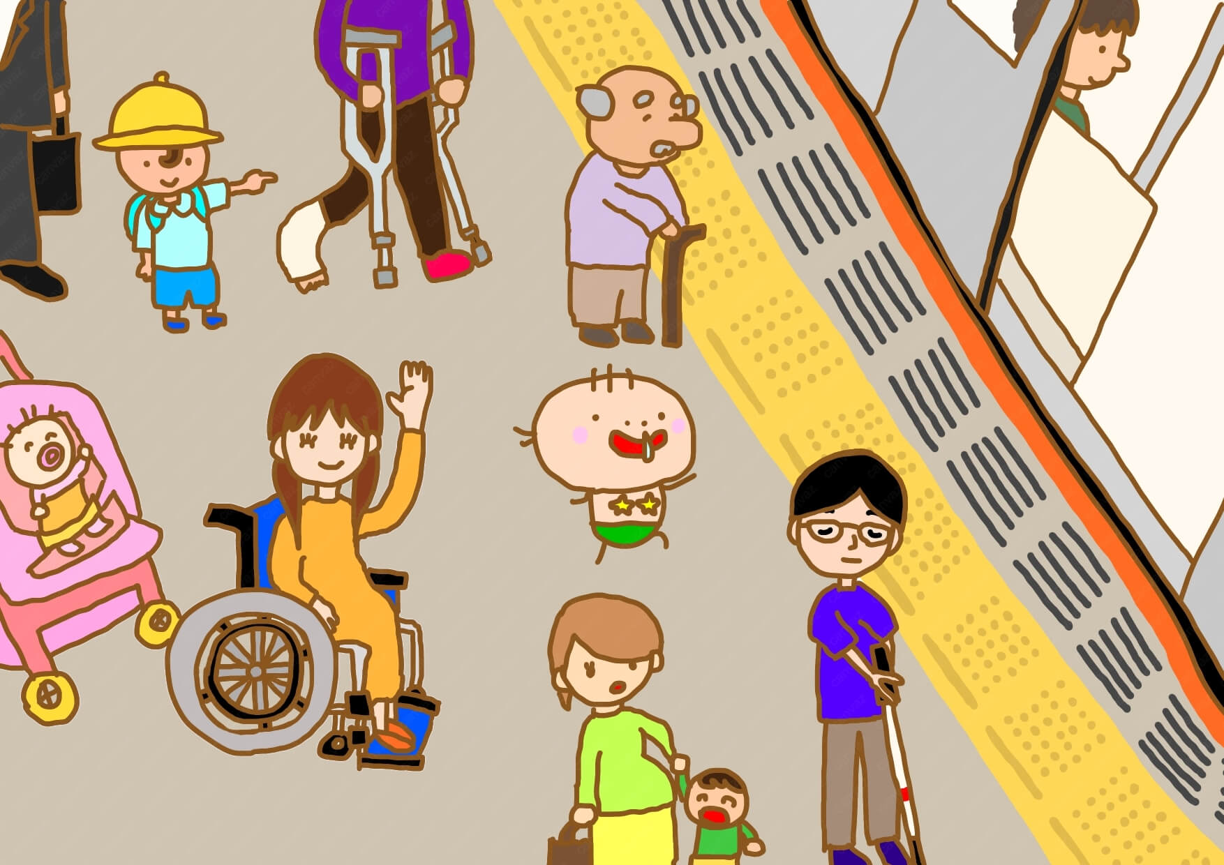 この作品は、どんな人でも自由に移動できる駅のホームをイメージして描きました。