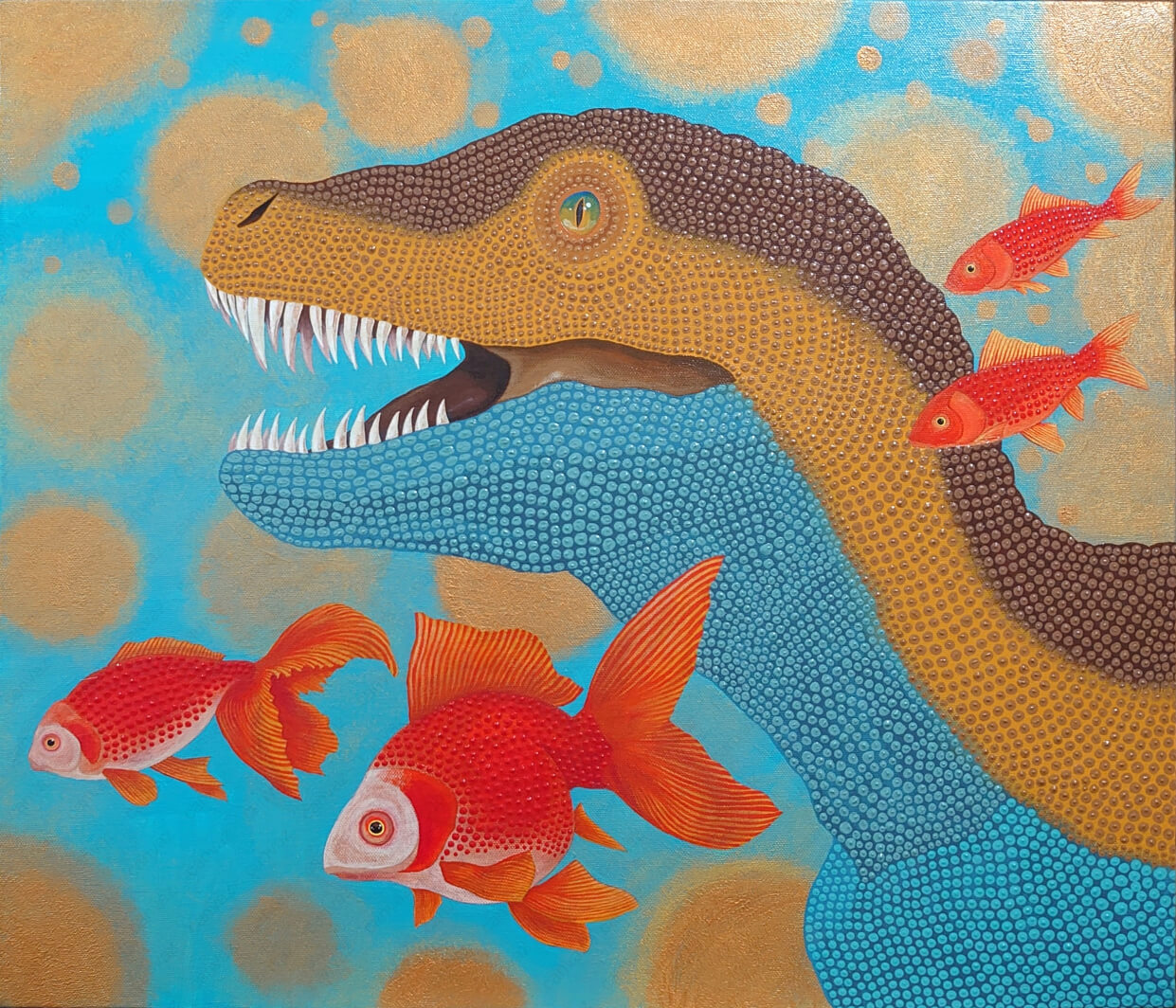 金魚も恐竜も、好んで描く生き物たちはすべて旅をしたことで出会い、興味を持ちました。