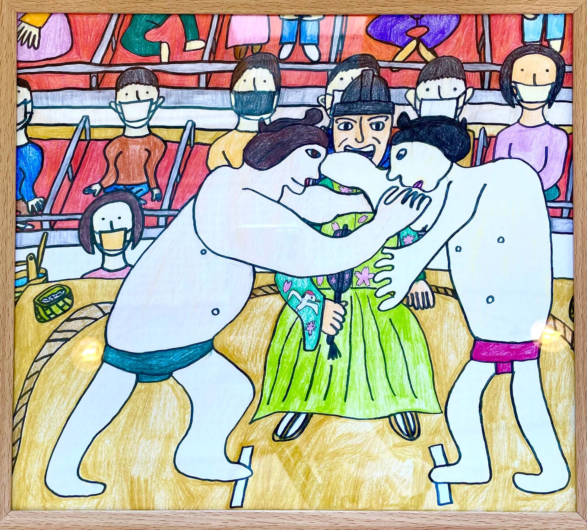 展示用絵画:相撲がはじまった [作者:ウサヤルヒロ]