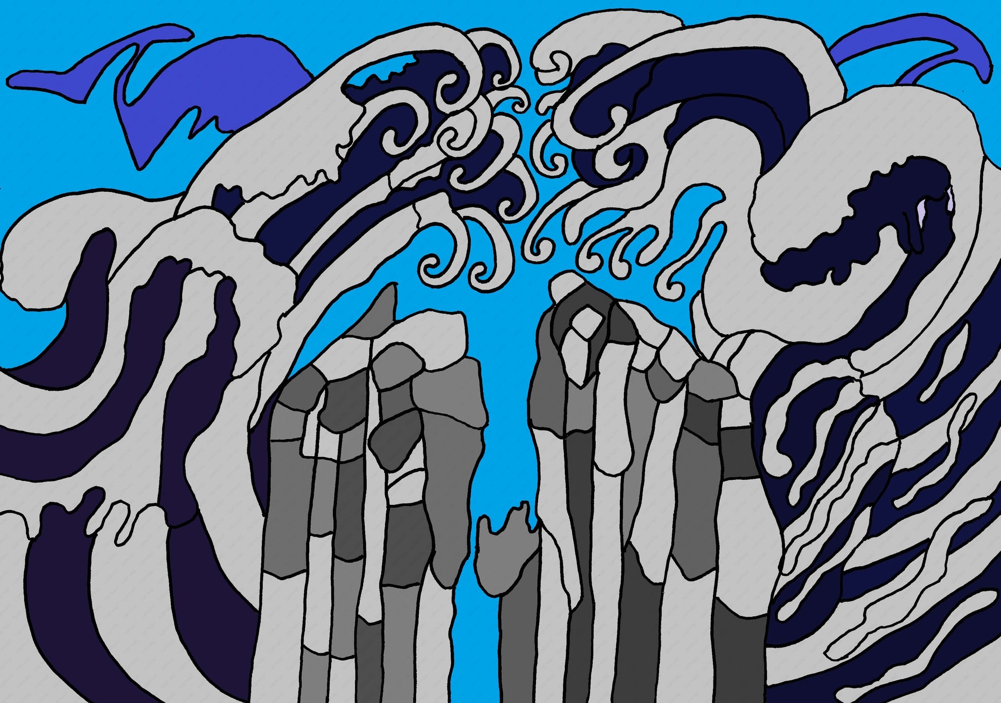展示用絵画:日本海と東尋坊 [作者:工房はんど shigeru]