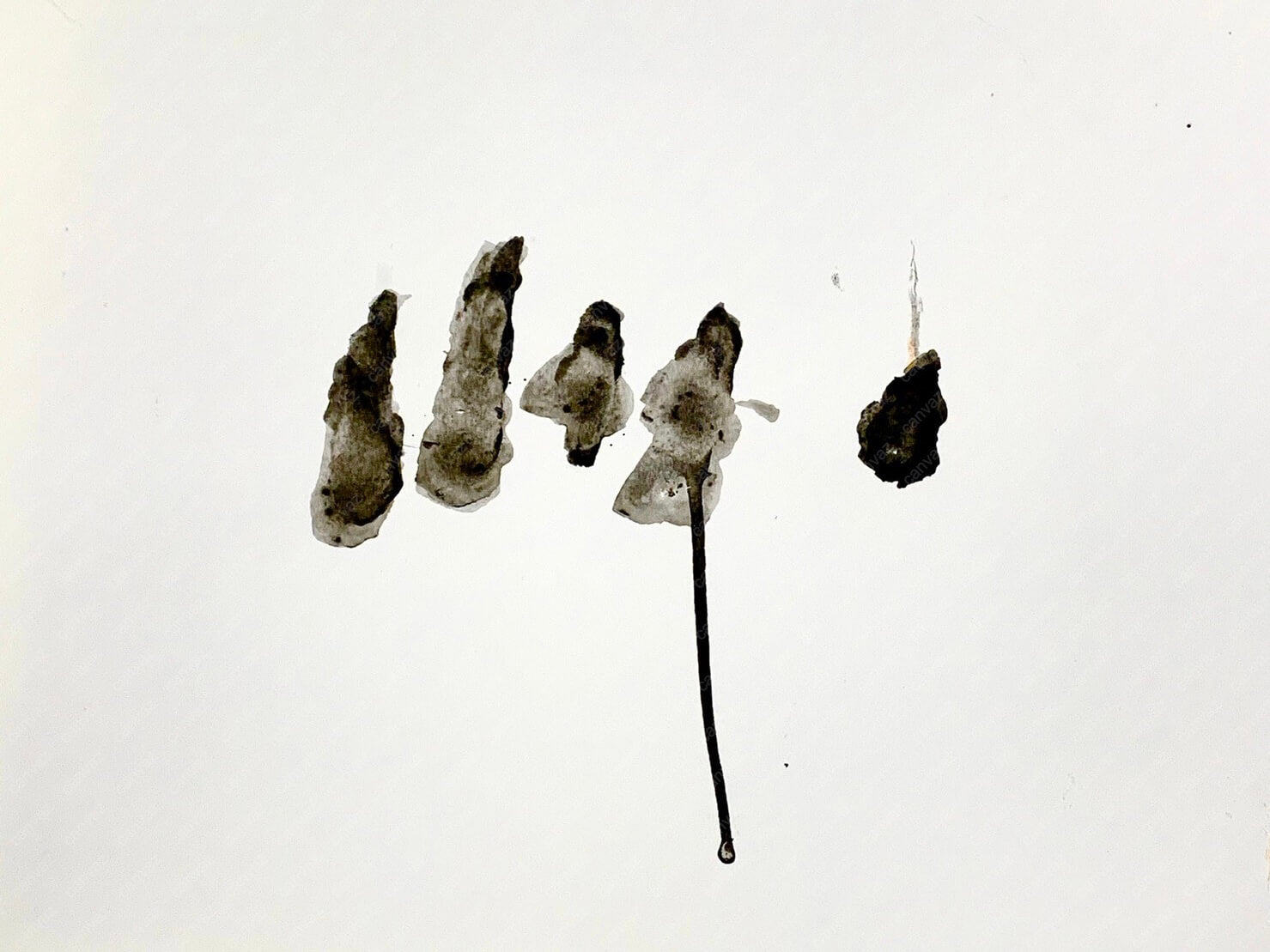 水彩絵の具を使用し、画用紙に思いのままに筆を運んでいます。黒一色ですが、濃淡をつけることで水墨画のような味わいのある作品に仕上がりました。